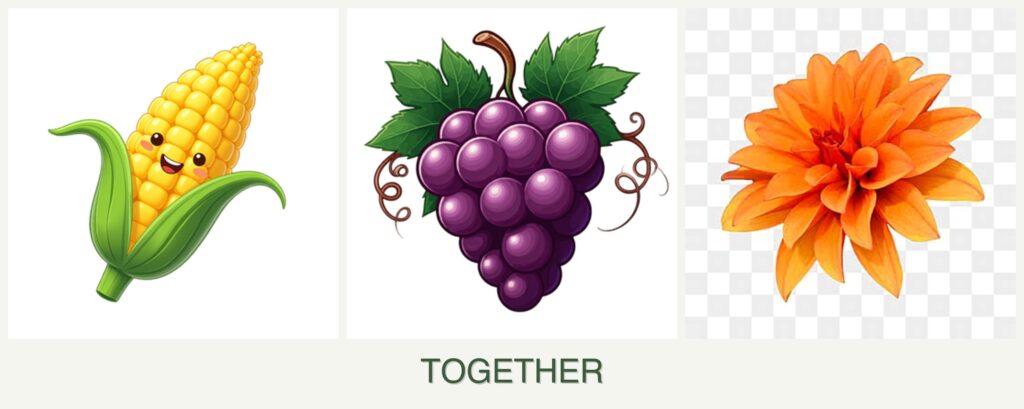 - Timing: Plant corn in late spring, grapes in early spring, and dahlias after the last frost.