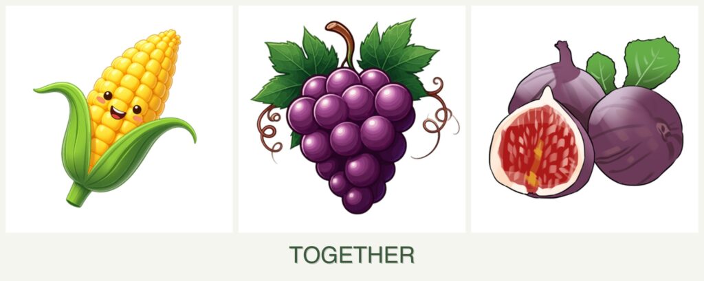 - Pest Repellent Properties: Corn can act as a windbreak for grapes and figs, while grapes may attract beneficial insects.