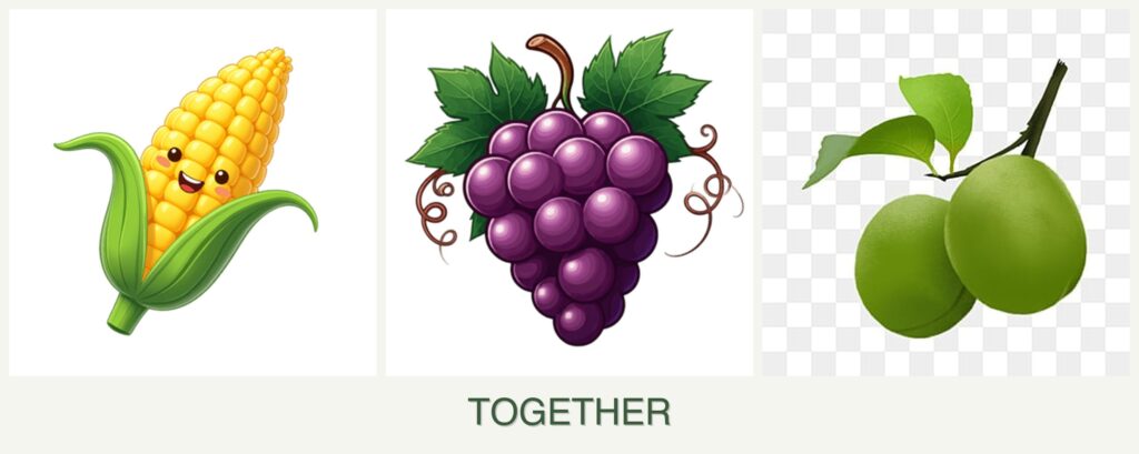 Compatible Companions: Consider planting corn with beans or squash, and grapes with herbs like basil or marjoram.