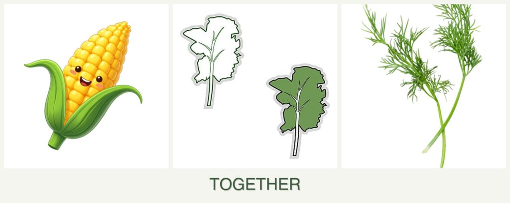 Soil Health Benefits: Corn’s extensive root system can help improve soil structure, while dill’s deep roots can bring nutrients up from lower soil layers.