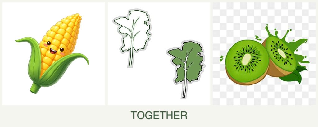 Nutrient Needs and Spacing: Corn is a heavy feeder, requiring nitrogen-rich soil, which can deplete nutrients needed by kale and kiwi. Additionally, corn’s tall growth habit can overshadow kale, limiting its access to sunlight.