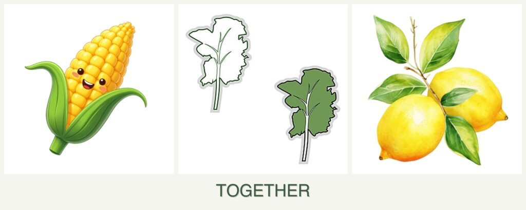 - Spacing: Corn grows tall and can overshadow kale, which needs space to spread. Lemons, as trees, require ample room for their root systems and canopy.