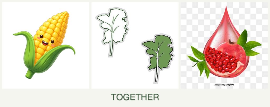 - Spacing: Corn grows tall and can overshadow kale, while pomegranates need ample space to spread.