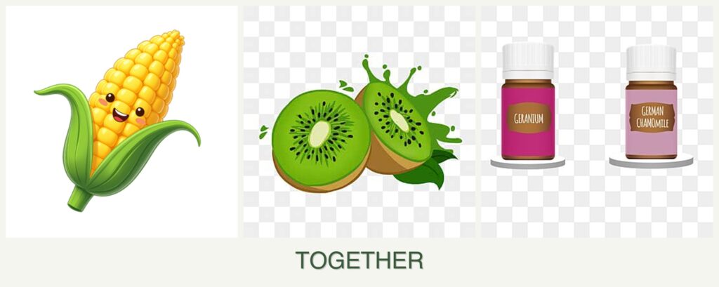 - Pollinator Attraction: Geraniums can attract pollinators, which may benefit corn and kiwi indirectly.