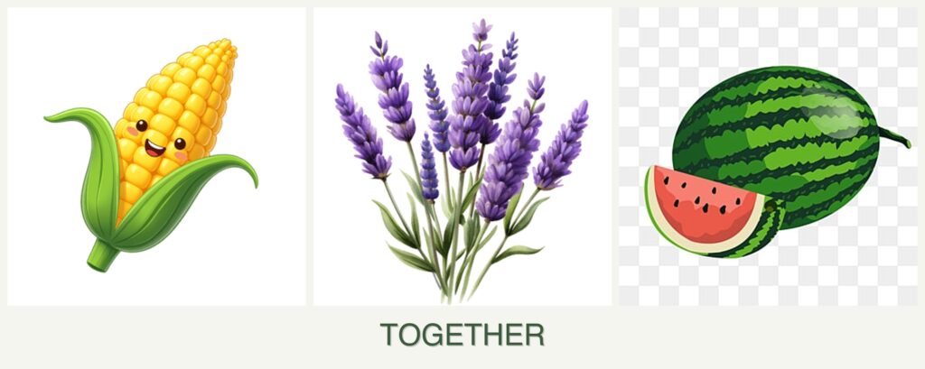 Pest Control: Lavender is known for its pest-repellent properties, which can benefit nearby plants. However, corn and melons do not directly benefit from lavender’s specific pest deterrents.