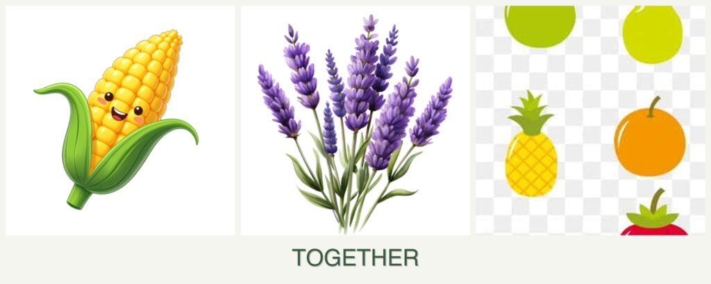 - Resource Competition: Corn’s nutrient and space demands can overshadow lavender and pears.