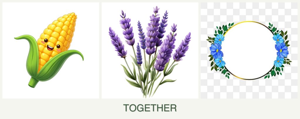 - Growth Requirements: Corn requires full sun and ample water, while lavender thrives in well-drained soil with less water. Zinnias are adaptable, preferring full sun and moderate watering.