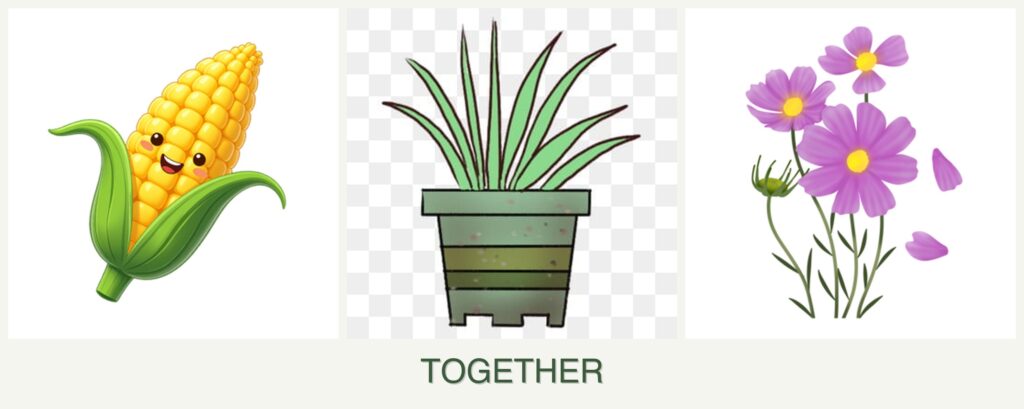- Competition for Resources: Corn’s high nutrient demand may overshadow the needs of lemongrass and cosmos.