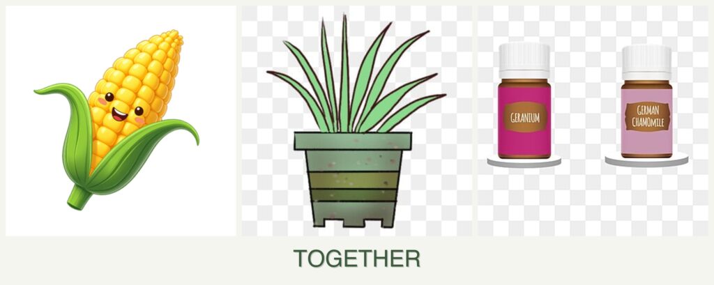 - Resource Competition: Corn’s high nutrient demand may overshadow the needs of lemongrass and geraniums. Consider using organic fertilizers to supplement nutrients.