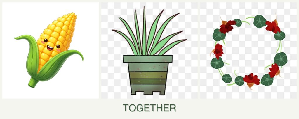 - Improved Flavor or Growth: Nasturtiums can improve soil quality by fixing nitrogen, benefiting the corn’s growth.