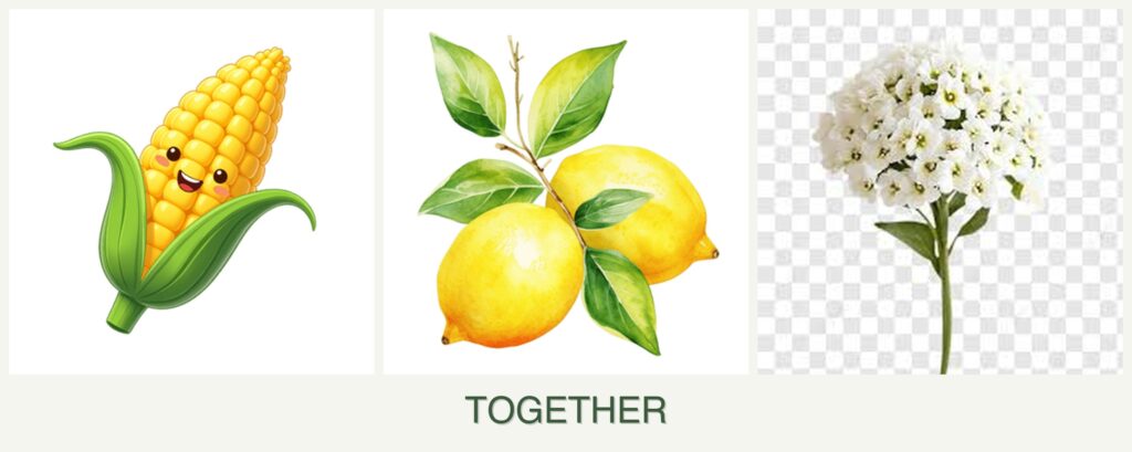 - Improved Growth: Corn can provide a windbreak for lemons, while alyssum’s ground cover helps retain soil moisture.