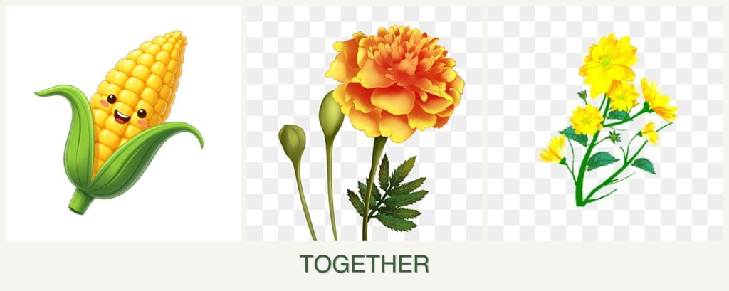 - Pest Control: Marigolds and calendula repel nematodes and other pests, protecting corn.