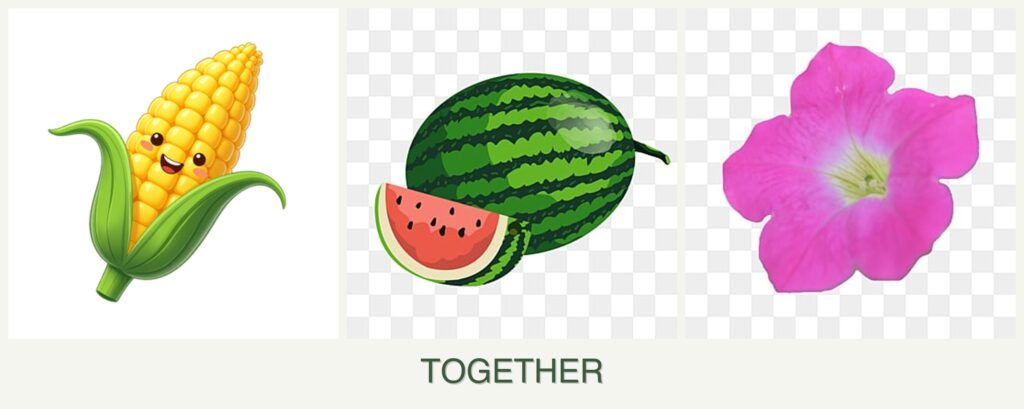 - Pest Control: Petunias can deter aphids and other pests, benefiting the corn and melons.