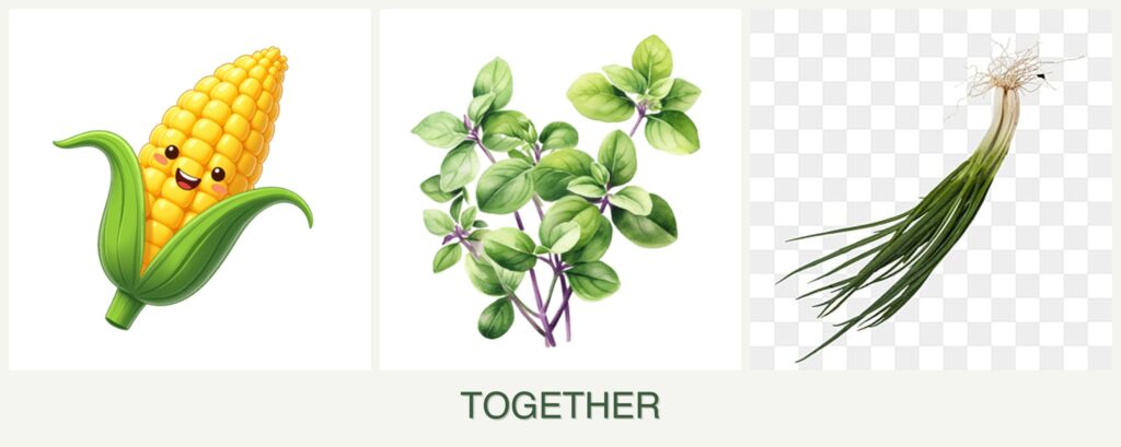 - Timing: Plant corn first, as it takes longer to mature. Follow with oregano and chives.