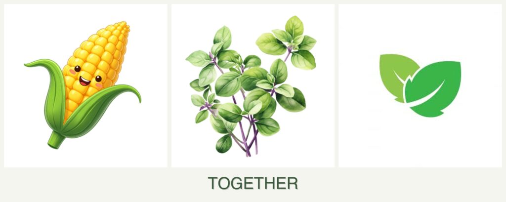 - Resource Competition: Corn’s high nutrient needs can deplete soil resources, affecting oregano and mint.
