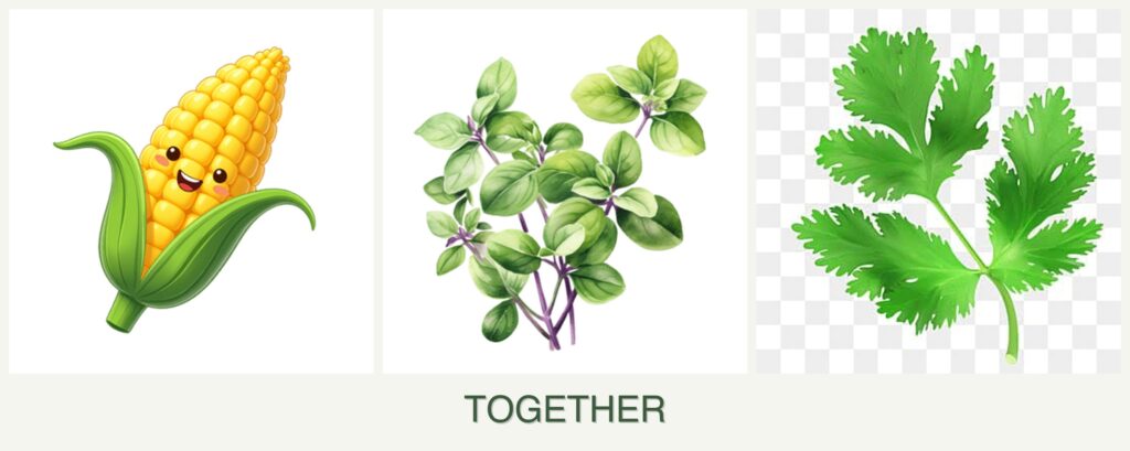 - Competition for Resources: Corn’s height can shade shorter plants like oregano and parsley, potentially affecting their growth.