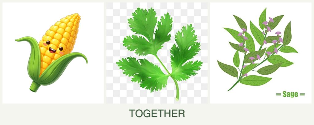 - Resource Competition: Corn’s high nutrient demand can outcompete parsley and sage if not managed properly.