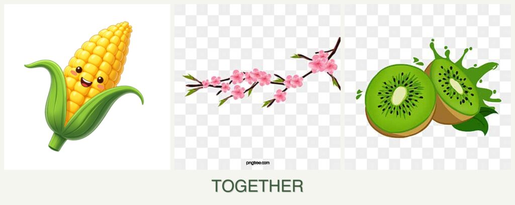 - Timing: Plant corn in spring after the last frost, peaches in late winter or early spring, and kiwi in early spring.