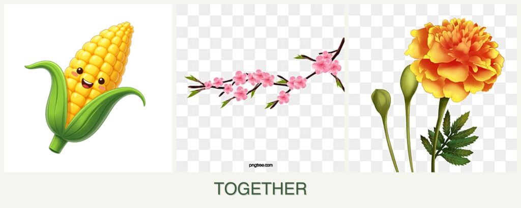- Timing: Plant marigolds first, followed by corn and peaches in early spring.