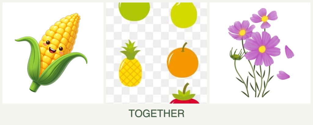 - Growth Requirements: Corn and cosmos share similar sunlight and soil needs, while pears require more space and slightly different soil conditions.