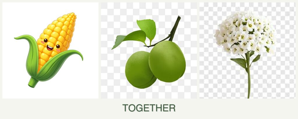 - Pollinator Attraction: Alyssum’s flowers attract pollinators, benefiting both corn and plum pollination.