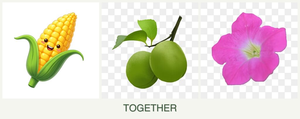 - Resource Competition: Corn’s high nutrient demand may deplete soil resources, affecting plums and petunias.