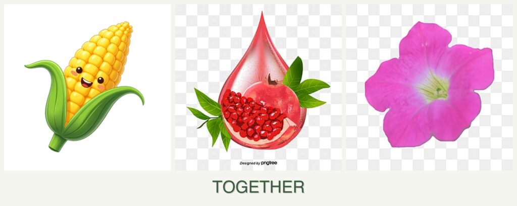 - Growth Requirements: Corn requires a lot of space and full sun, while pomegranates need well-drained soil and petunias thrive in slightly different conditions.