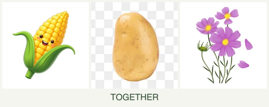 - Timing: Plant corn and cosmos in spring after the last frost. Potatoes can be planted slightly earlier, as they tolerate cooler soil.