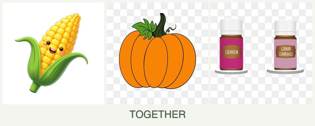 - Pest Control: Geraniums can repel common pests like cabbage worms and Japanese beetles, which can benefit both corn and pumpkin.