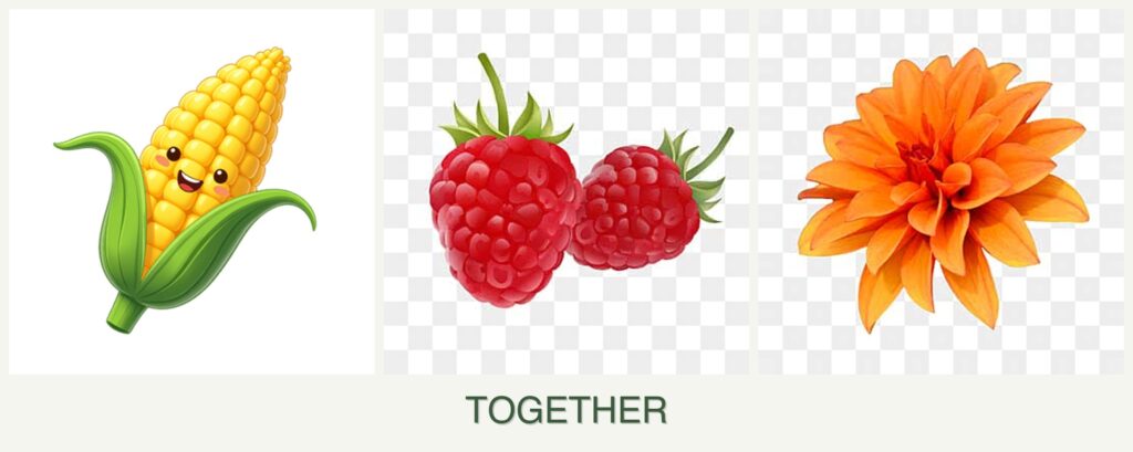 Can you plant corn, raspberries and dahlias together?