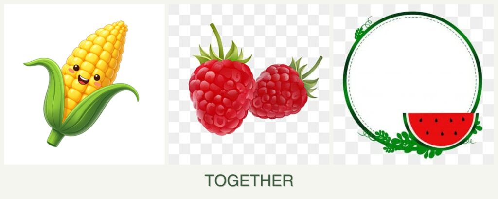 - Spacing: Corn needs room to grow tall, while raspberries and watermelons spread out, requiring careful spacing to avoid competition.