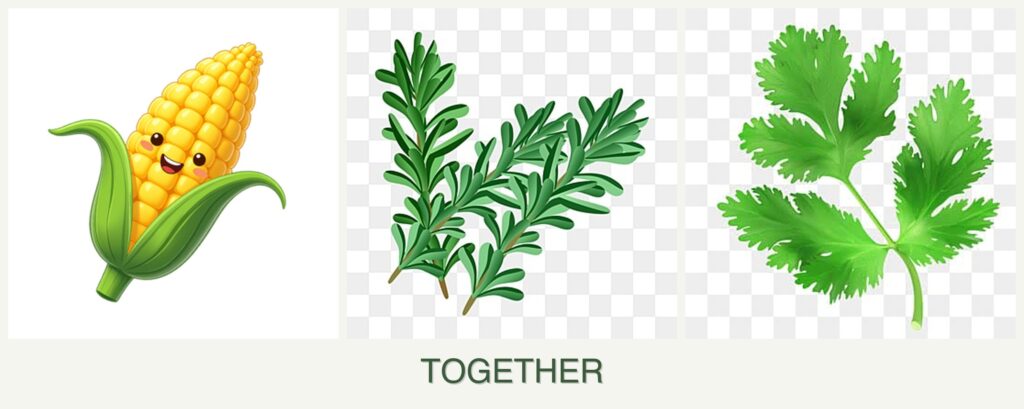 - Soil Preparation: Enrich the soil with compost to support corn’s nutrient needs, and ensure good drainage for rosemary.