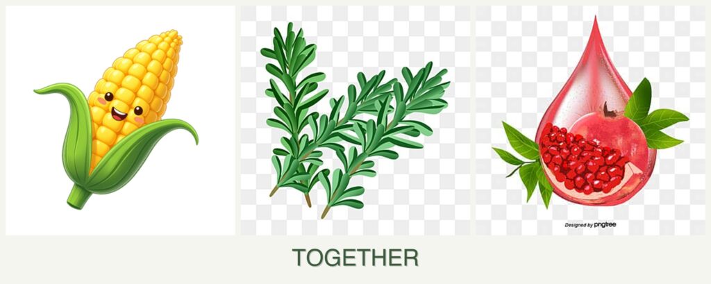 - Nutrient Needs and Spacing: Corn’s heavy nutrient requirements can deplete the soil, affecting the growth of rosemary and pomegranates.