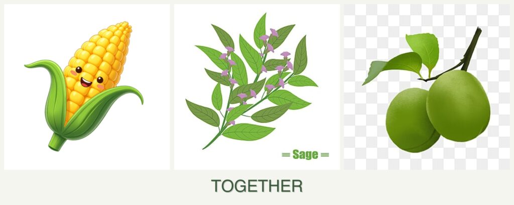 - Resource Competition: Corn and plums require significant nutrients, which might overshadow sage’s needs.
