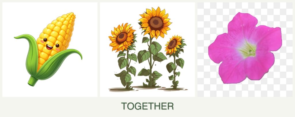 - Resource Competition: Corn’s high nutrient demand may overshadow the needs of sunflowers and petunias.