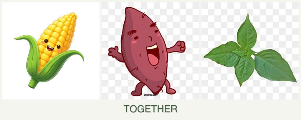- Space Efficiency: Corn’s vertical growth allows sweet potatoes to spread beneath it, maximizing garden space.