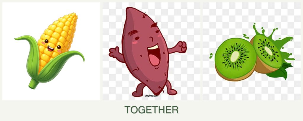 - Pest Control: Corn and sweet potatoes can attract different pests, and kiwi’s unique pest profile means it doesn’t benefit from the protection these plants might offer each other.