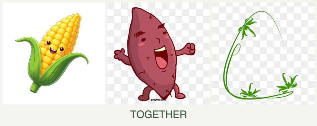 - Soil Health Benefits: Sweet potatoes improve soil structure, and corn provides organic matter when decomposed.