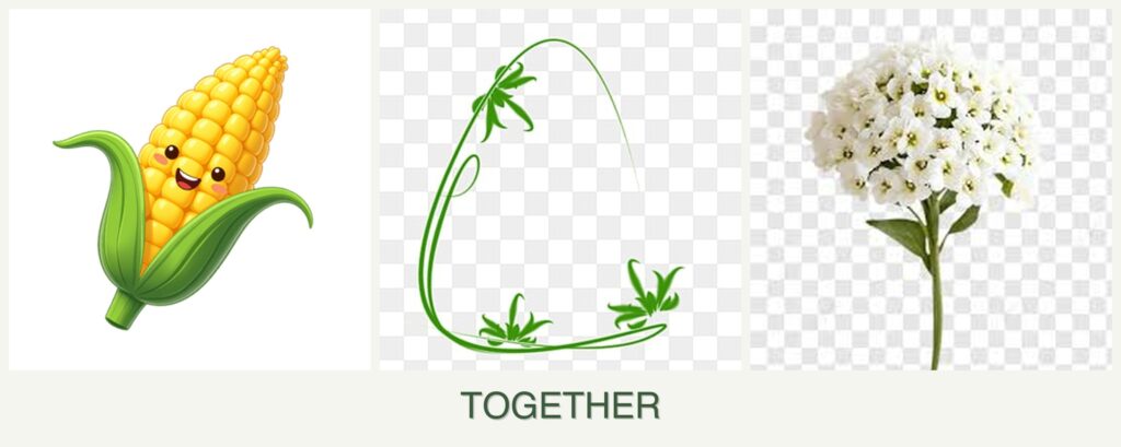 - Space Efficiency: Corn’s vertical growth allows for efficient use of space, with tarragon and alyssum filling in the lower layers.