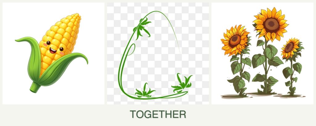 - Improved Growth: Sunflowers and corn can support each other structurally, while tarragon’s aromatic oils may enhance growth.