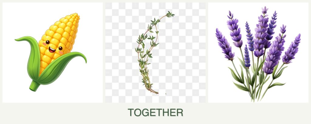Despite their differences, planting corn, thyme, and lavender together offers several benefits: