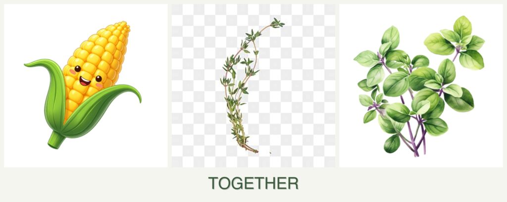 - Pest Repellent Properties: Thyme and oregano are known for their strong scents, which can deter pests that might otherwise be attracted to corn.