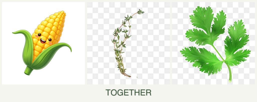 Corn acts as a natural trellis for climbing plants, but thyme and parsley are low-growing herbs that won’t benefit from this. However, thyme can repel certain pests, and parsley attracts beneficial insects, making them good companions for corn. Ensuring adequate spacing and meeting each plant’s growth requirements are key to successful companion planting.