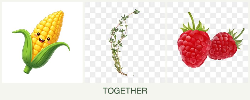 While corn, thyme, and raspberries are not ideal companions, each offers benefits when paired with other plants: