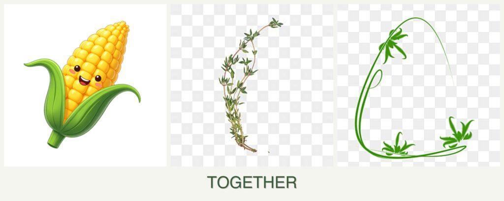 - Space Efficiency: Utilizing vertical space with corn and ground cover with thyme maximizes garden efficiency.