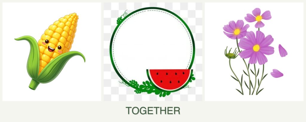 Planting corn, watermelons, and cosmos together offers several benefits: