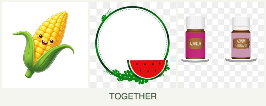 - Growth Requirements: Corn and watermelons require full sun, while geraniums can tolerate partial shade.
