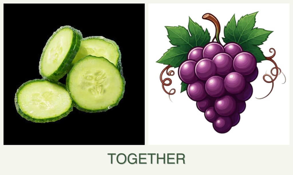 - Competition for Resources: Grapes and cucumbers compete for sunlight and nutrients. Ensure proper spacing and regular fertilization.