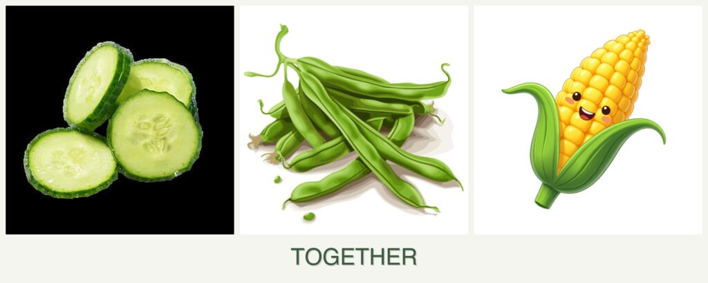 - Pest Control: Beans can deter certain pests that affect corn, while cucumbers can repel beetles.