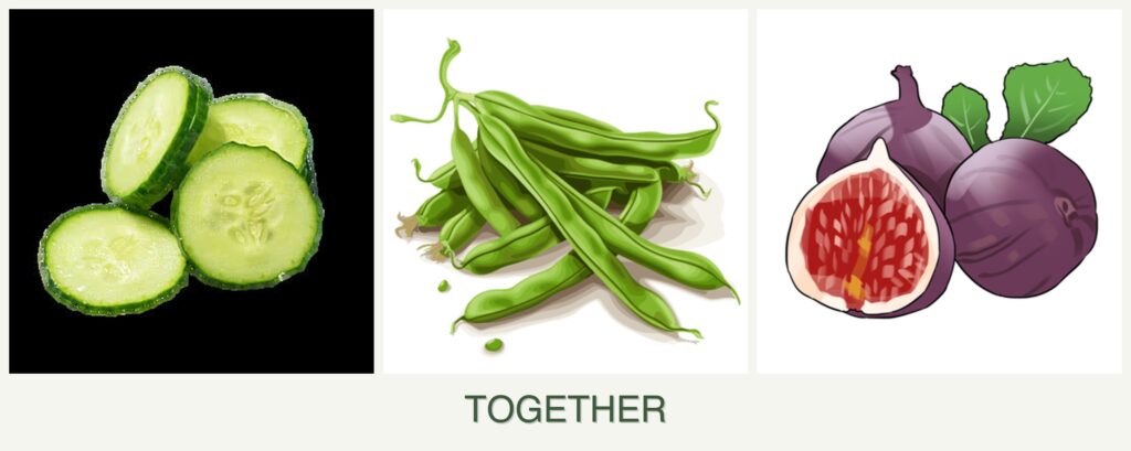 Beans enrich the soil with nitrogen, benefiting cucumbers. Figs, however, require more phosphorus and potassium, so additional fertilization may be necessary.